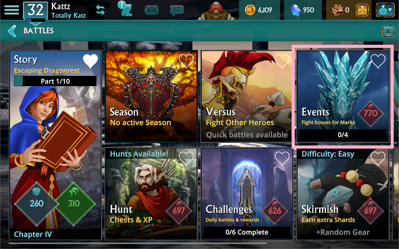 Events can be accessed via the Battles tab after reaching Level 5 with a Hero.