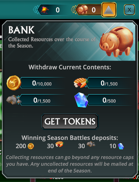 As you play battles, the resources rewarded will be stored in the Season Bank. These will be sent to you at the end of the Season if they are not collected during the event.